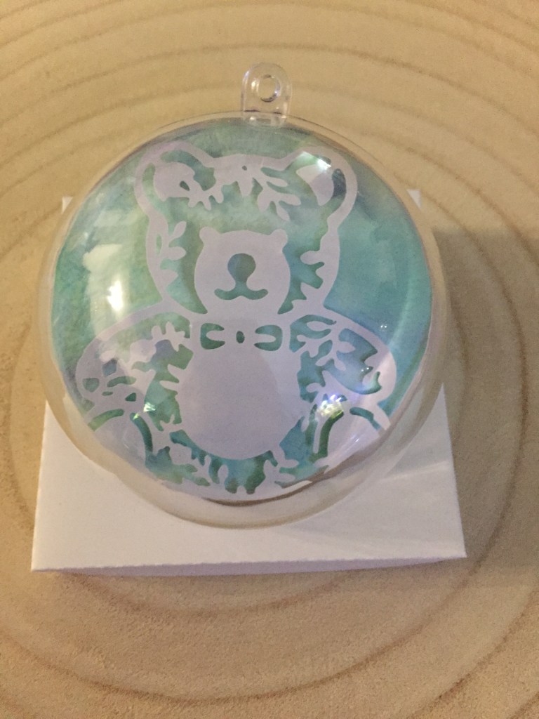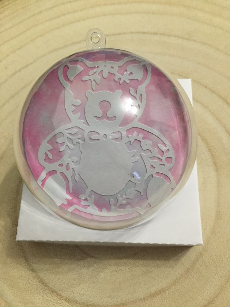 Boule en plastique avec différents motifs, vous pouvez choisir de la laisser comme elle vous est présentée ou de la personnaliser avec un prénom par exemple.