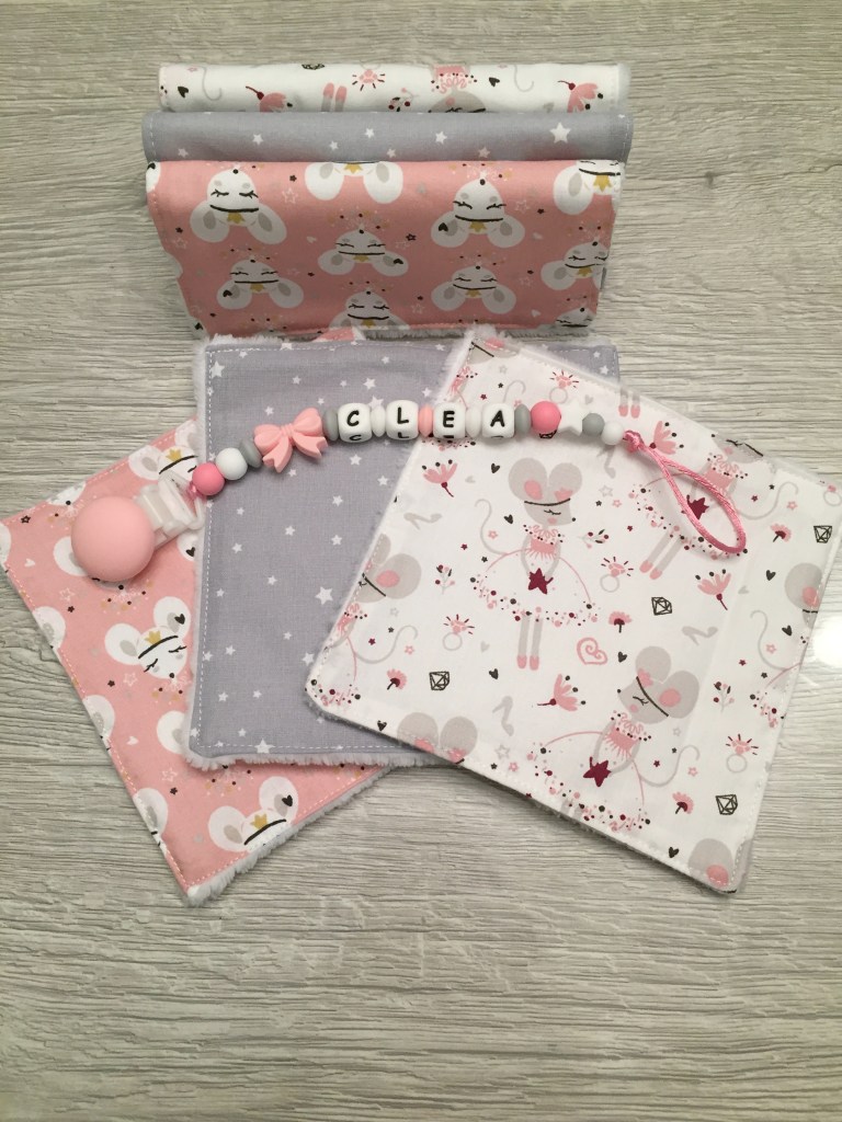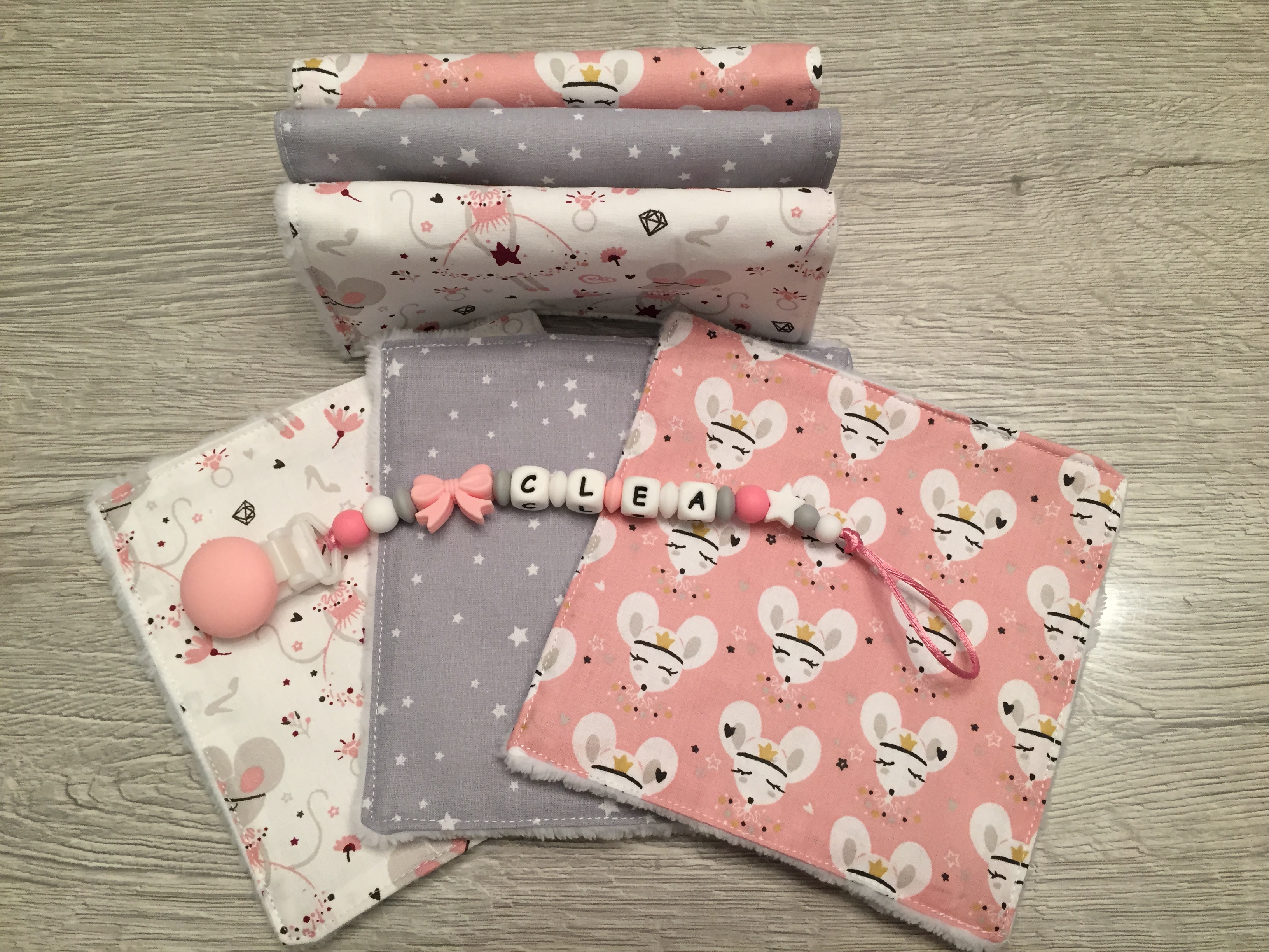- 6 Débarbouillettes 16*16 cm (Réalisées en tissu Oeko-Tex avec du Coton et éponge bambou)