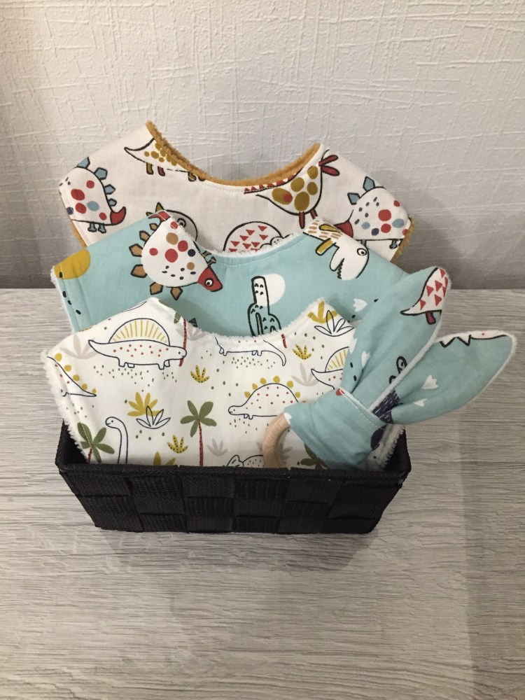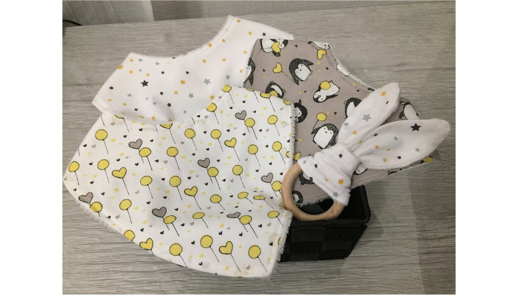- 1 Bavoir Bandana (Réalisé en tissu Oeko-Tex avec du Coton et éponge bambou)