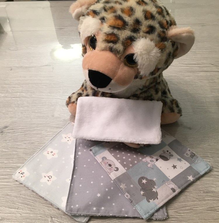 Réalisées à la main, avec un coté tissu en coton imprimé et l’autre en éponge Bambou. Tout les tissus sont certifiés Oeko-tex. (Label garantissant l’absence de substances nocives pour la santé , la peau et l’environnement.)