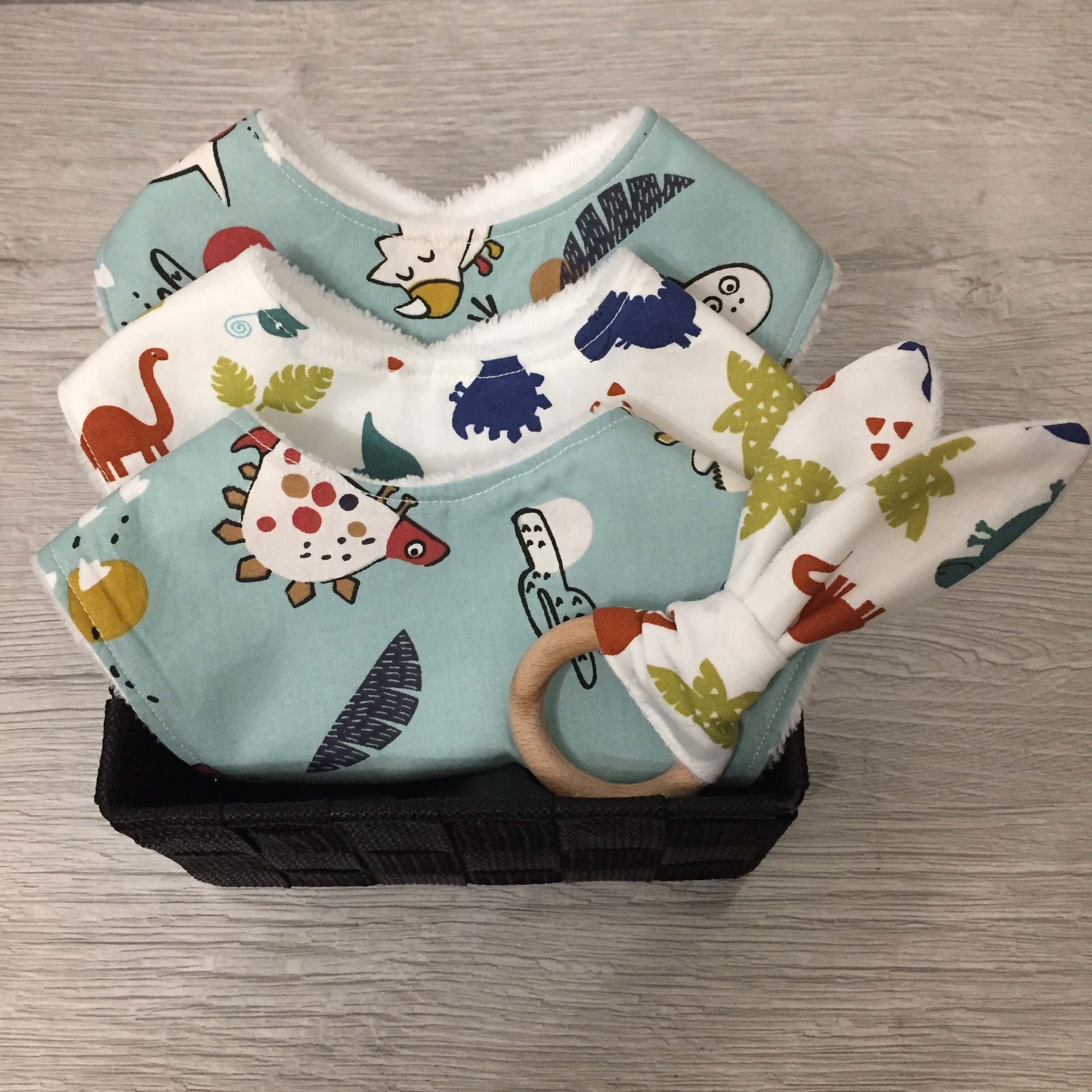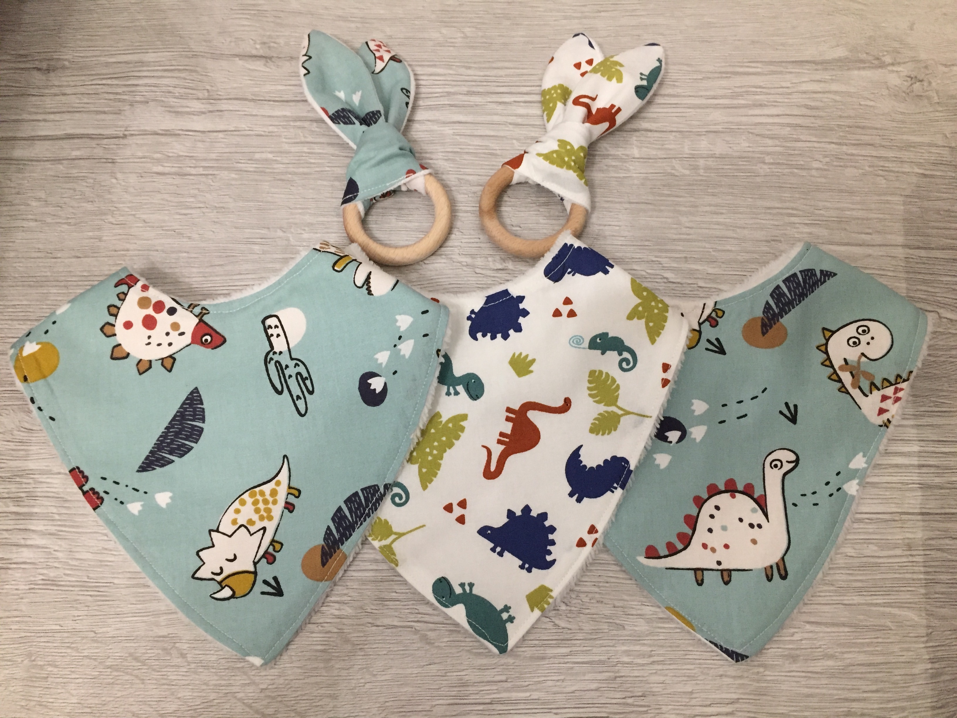 Pour ce modèle, vous pouvez soit choisir de partir sur 2 bavoirs blanc et un vert d’eau ou alors de faire l’inverse 2 bavoirs vert d’eau et un blanc. N’hésitez pas à me faire parvenir votre choix en me contactant juste ici.